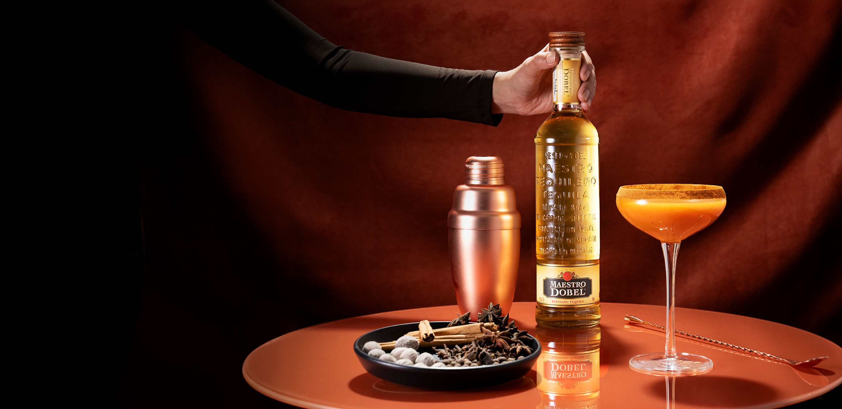 Cinnamon, citrus, and pumpkin spice meet the warmth of Dobel Reposado.