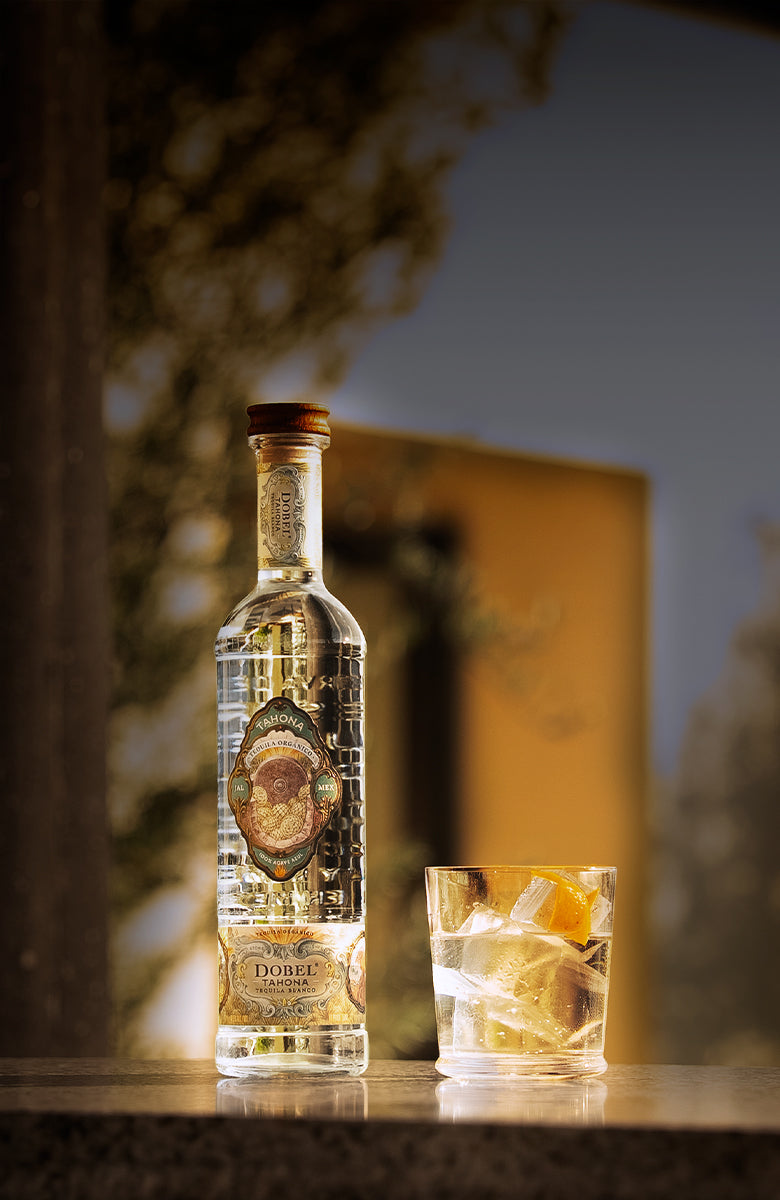 A white tequila negroni featuring Dobel Tahona Blanco.